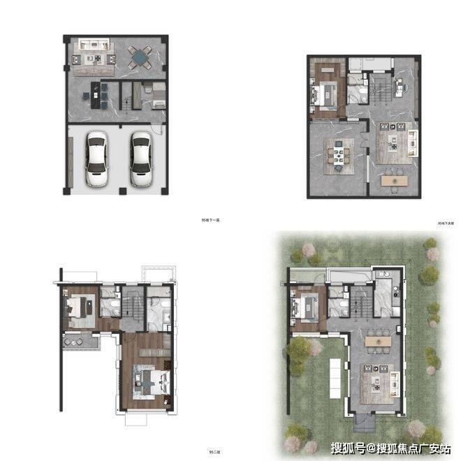 约99㎡合院产品做到了地上2层,地下室挑高5.5米。
