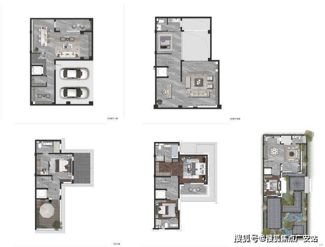 约126㎡的明星户型做到了5套房设计,地下一层、地上三层的空间形态,将空间尺度无限放大。