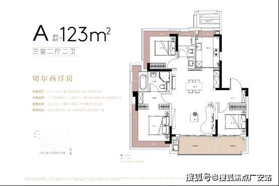 南北两个卧室及主卧卫生间均设有270度转角飘窗(低楼层除外),主卧套房面积约21㎡,功能齐全——独立四件套卫浴区、化妆台、步入式衣帽间,尊崇感与舒适度兼具。