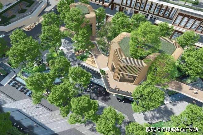 约 4500㎡首层社交花园: 位于商业裙楼顶部,通过错层绿化设计,穿插 “树屋” 景观,与住宅架空层、地库光厅形成四重立体景观。