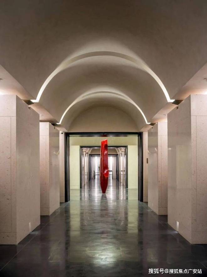 艺术更渗透至生活末梢: 归家大堂复刻威尼斯酒店复古信箱,将优雅融入日常;架空层创新设置 化妆间 (女业主候车补妆)、 e人会客厅i人独处舱 ,精准适配多元社群需求。
