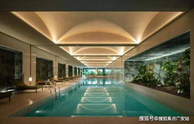 二层空间以艺术为脉络重构功能场景: 专业餐酒吧搭载高端设备,化身社交艺术展厅; 植物园泳池 以“树影婆娑”为灵感,池底铺砌皮革面绿纹石材,营造都市秘境; 女性友好健身房 定制专属器械区,并配备补妆间、心理理疗室,融合健康管理与私密关怀。