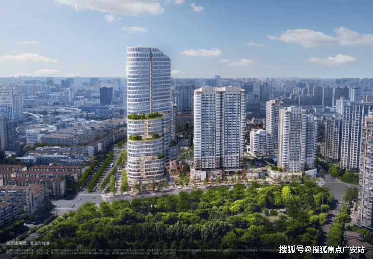项目南侧紧邻 约 3.45 万㎡中兴公园 ,作为市政级城市公园,其绿化面积不计入项目指标,但通过 视线通廊设计 将公园绿意引入社区, 形成 “城市绿肺——社区花园——空中绿廊” 的三重生态体系。