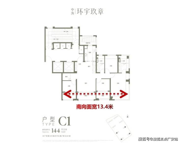 其二,是“约13.4米南向面宽”的尺度颠覆。