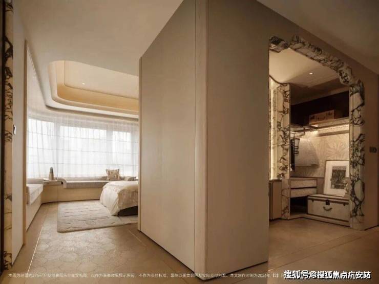 南向双套房分置两侧,主卧套房空间约50㎡,衣帽间的尺度足够惊人,不是“够用”,是“够挥霍”。