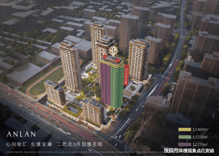 3月加推的3号楼,只有51套,主力建面约238㎡四房、275㎡五房和1套460㎡顶平。