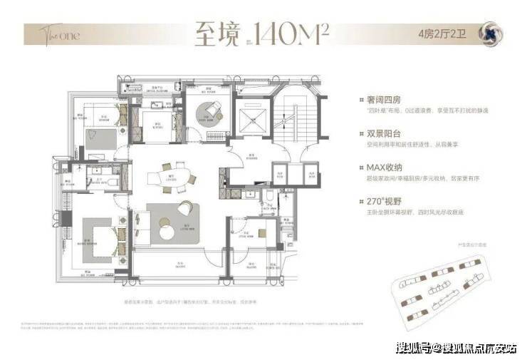 以约13.95米的南向超大面宽为基调,主卧面宽升级至约4.15米,规划可自由定义的X灵动空间,可以是书房、茶室或琴房,伴随家庭全周期成长而演变,让每位家人都能获得精神的沉淀与自我的和解。面宽约5.8米双厅则完全超越功能范畴,成为承载家族宴请、圈层社交的恢弘场域,尽显居者的格局与风范。270°转角巨幕视野,将光、风与景致更大程度地引入室内。