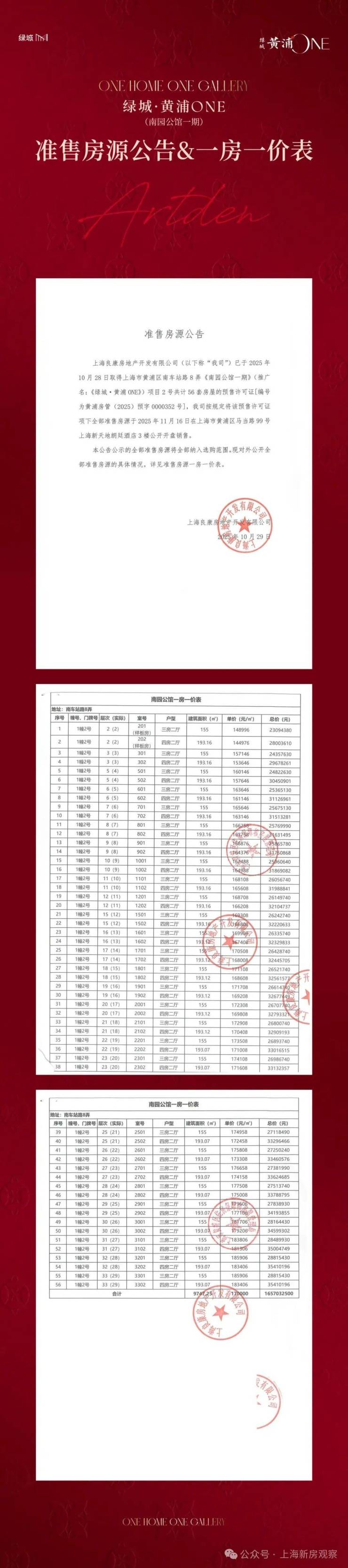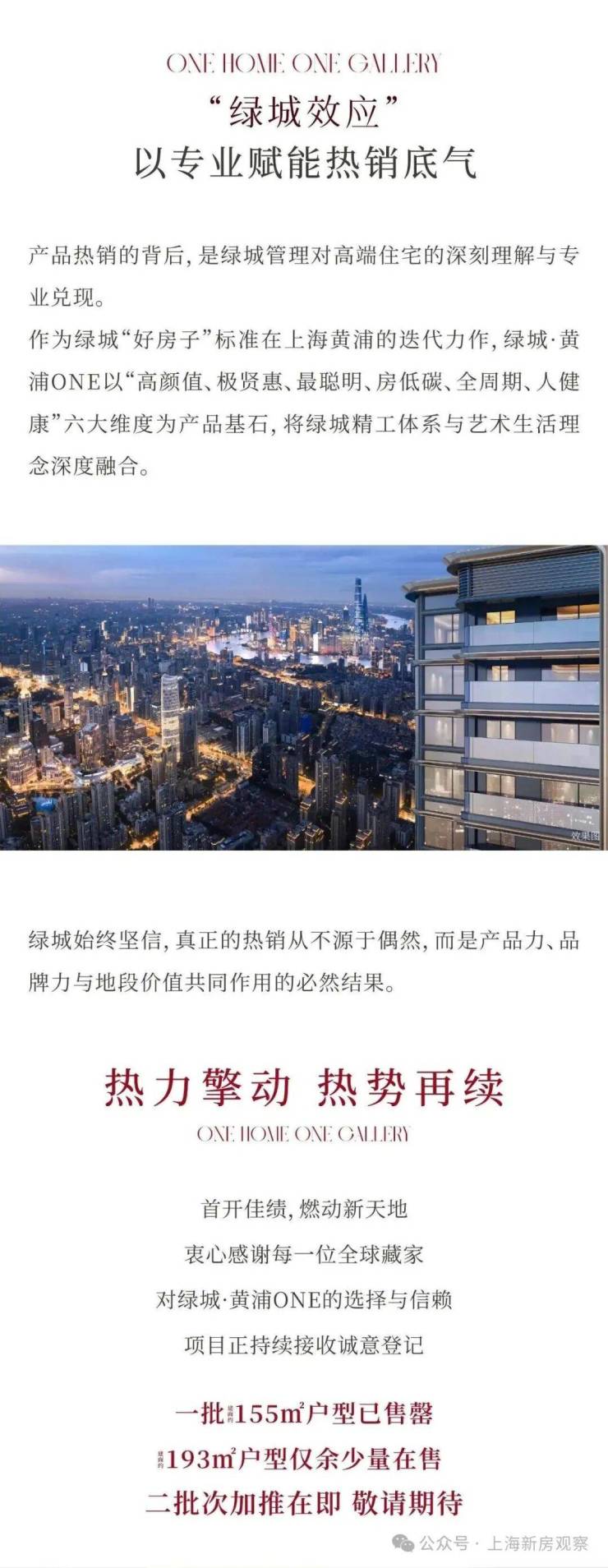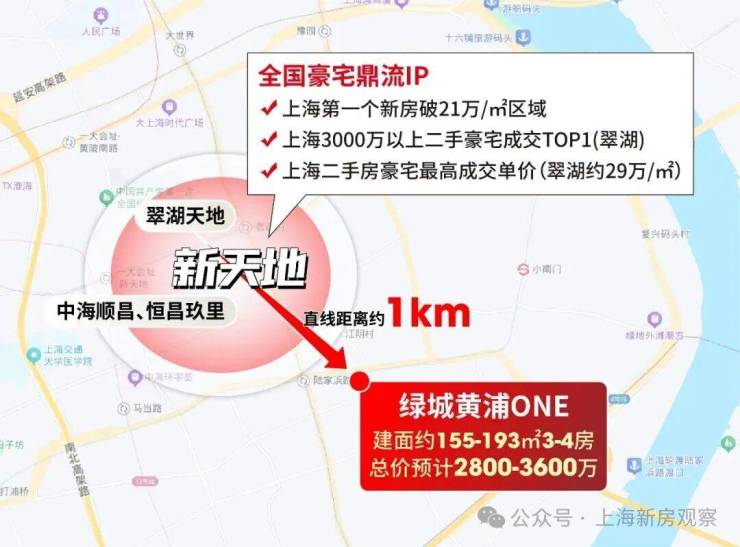 最新消息!老西门「绿城·黄浦ONE」首推建面约155㎡开盘售罄,193㎡4房少量在售!加推建面约155-193㎡3-4房;上期均价约17万/㎡!售楼处线上火热预约中!