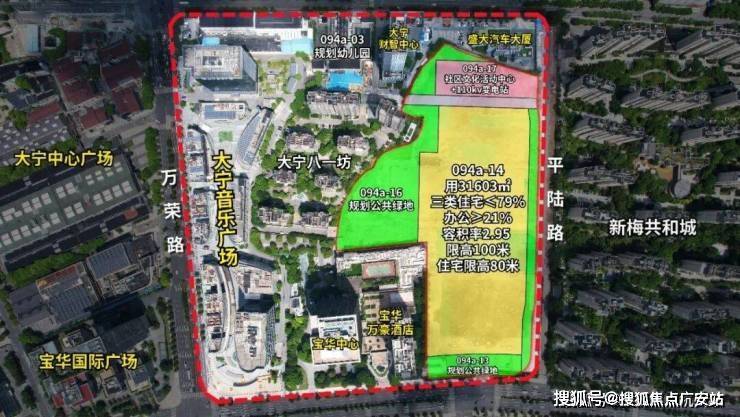 该项目位于大宁公园北侧、东临新梅共和城,占地面积约31603㎡,容积率2.95,限高100米(住宅高度不超高80米),计容面积约93229㎡,其中住宅占比≤79%,办公占比≥21%。