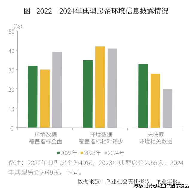 在披露指标的口径方面,房企间环境数据统计范围仍存在较大差距,无法有效体现房企经营过程中的温室气体排放总量、废弃物排放量、耗水量等信息。