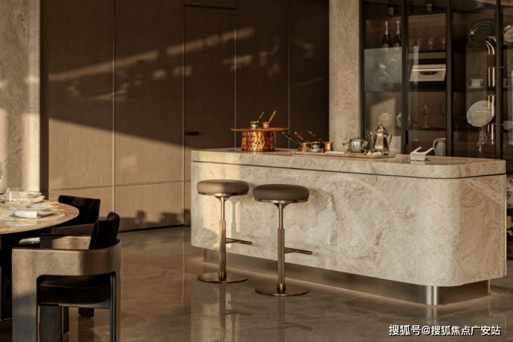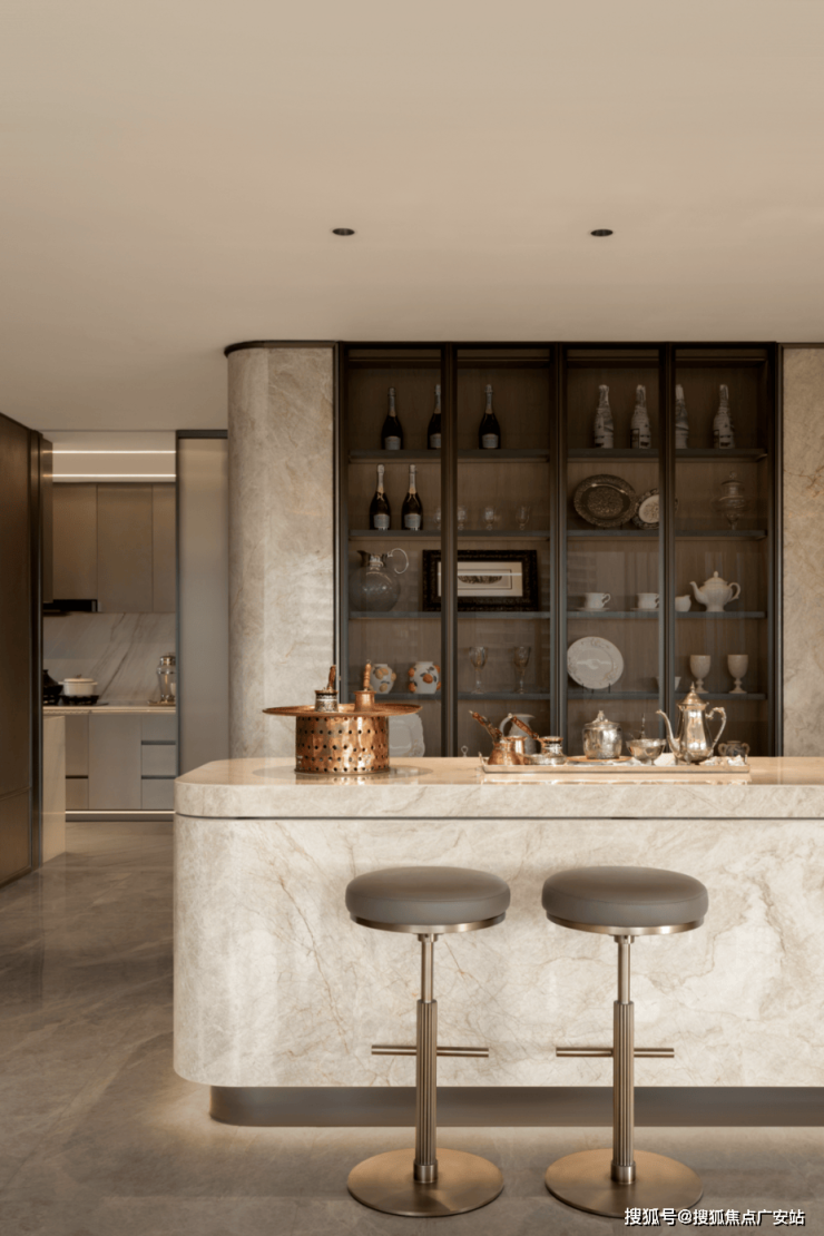 大理石地面回应当代美学中的轻盈与高级,这处区域讲求从容的仪式感,生活于其中是渐进而流动的。