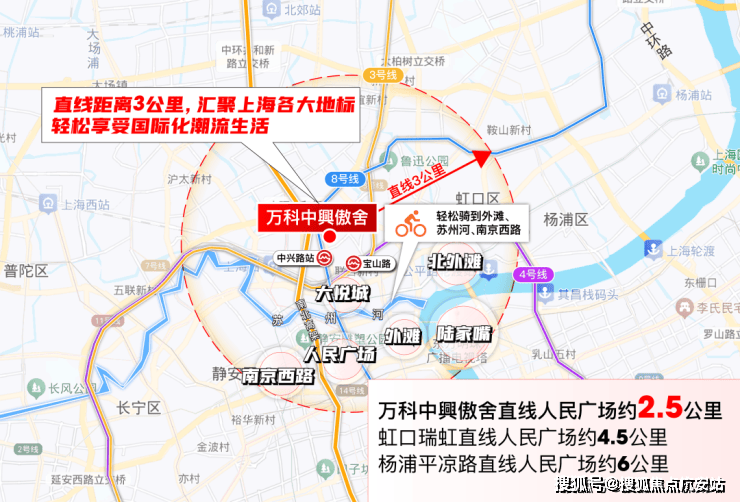 万科中兴路傲舍雄踞静安区中兴路 699 号,这里是内环核心的黄金地段,毗邻人民广场、南京西路等传统市中心区域,直线距离人民广场约 2.5 公里,距苏河湾万象天地仅 1 公里 。项目周边汇聚了南京路、陆家嘴、静安寺等多个市级商圈,成熟浓厚的居住氛围,让您随时随地都能感受到这座城市的繁华脉搏。