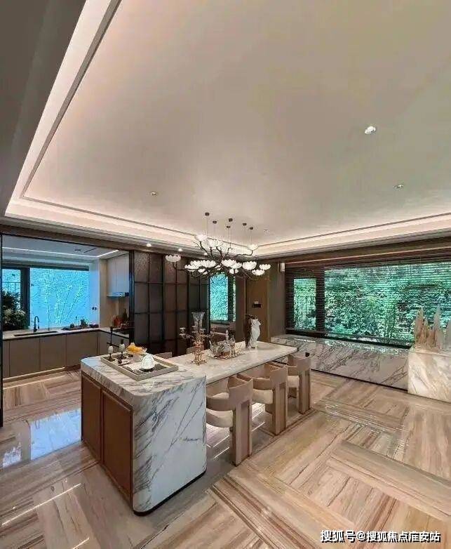 由外而内,用料十足,公区打造光石材就用了十几种,室内空间配置更是拉满。