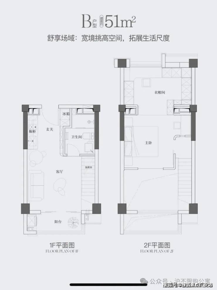 产品创新设计:4.5米挑高空间,双钥匙设计,双向采光通风,动静分区明确,既适合单身白领自住,也可用于以租养贷投资模式