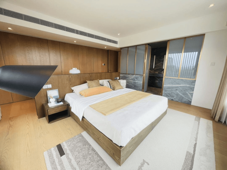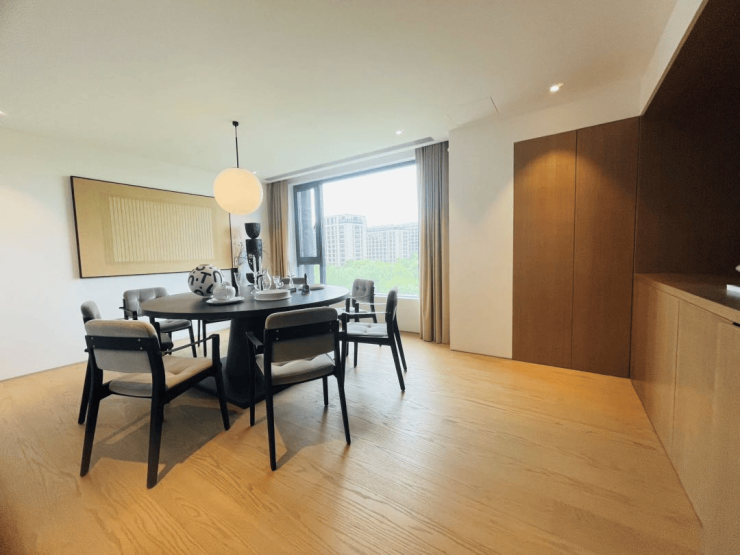社区配置,而为增强隐私防护采用客厅、阳台位置交替的设计,配有私人电梯,地下设有停车场可供业主专用,也不可谓不奢华。