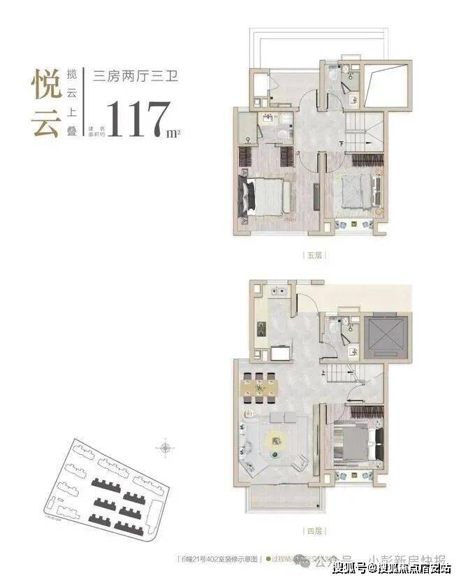 项目的上叠户型3房3卫的设计,每个家庭成员都能找到独属于自己的天地。