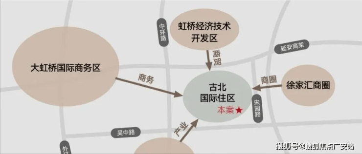 项目地处徐汇、长宁、闵行三区交汇处,是经贸产业核心圈中唯一的高端宜居板块。
