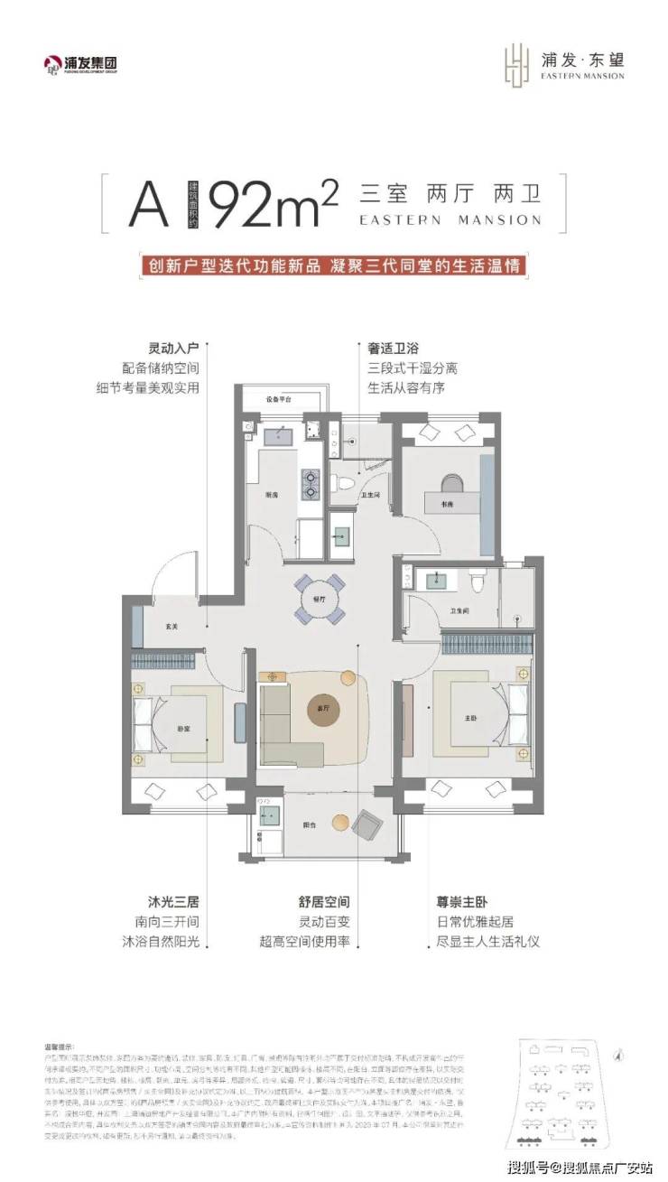 浦发上品推出建面约92-127㎡的3-4房,在所有户型设计上至少为三开间朝南,这对于任何家庭结构的购房者来说,都能享受到更好的采光、通风、视野。