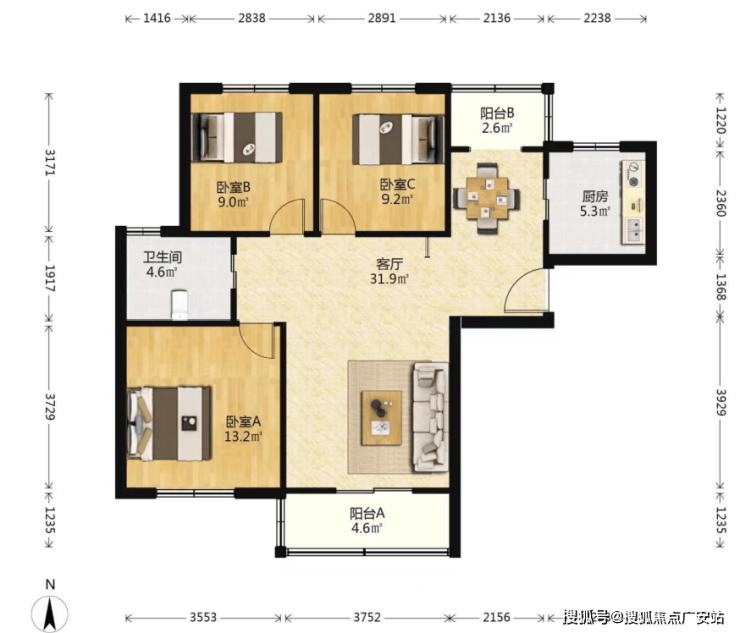 两房:80.97m²▼