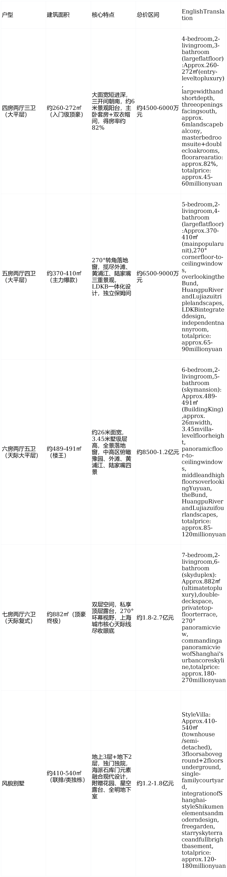 PureTop-tierCircleof"Tianzi"Series:Only428collection-levelculturalcommunityunitsplanned,covering260-882㎡largeflatfloorsandstylevillas,270°cornerfloor-to-ceilingwindowsoverlookingtheBund,HuangpuRiverandLujiazuitriplelandscapes
