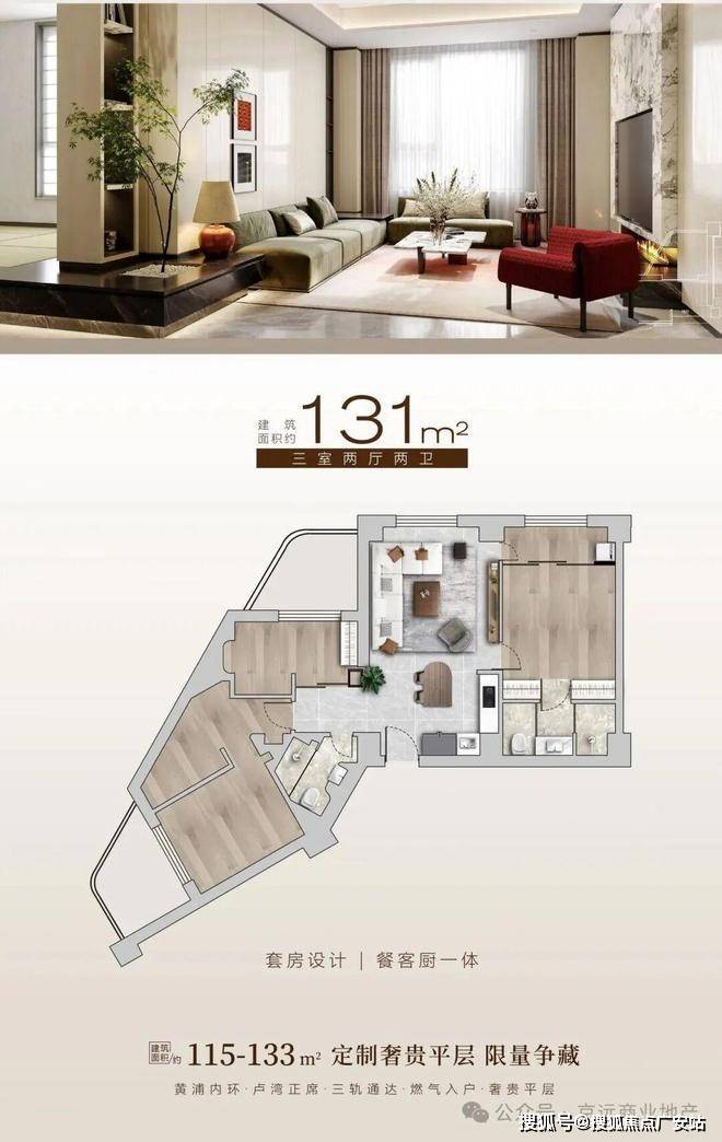建面约132-133㎡三室两厅两卫,总价608-880万
