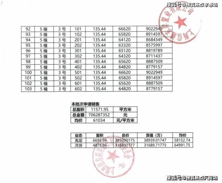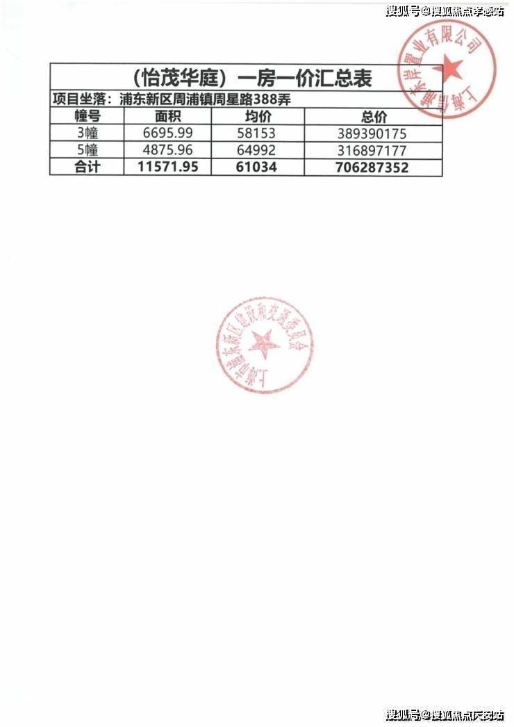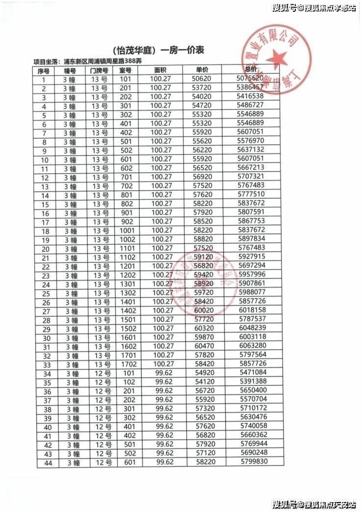 项目一房一价表▼