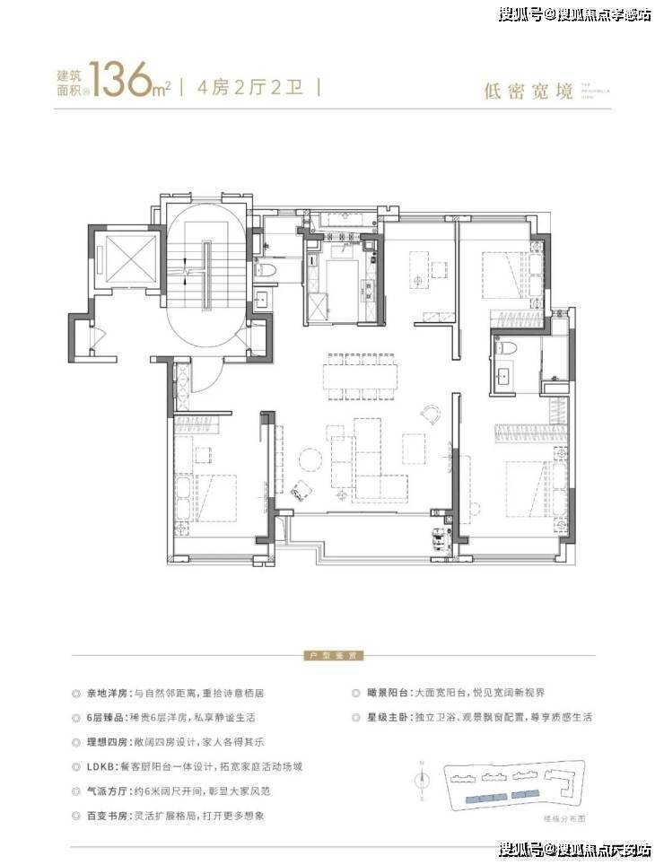 建面约136㎡6层洋房纯粹的亲地性和高得房率,既能满足三代同堂居住需求,也能保障私密性和居住体验感的提升;