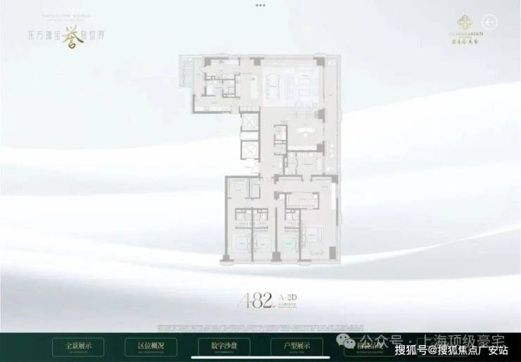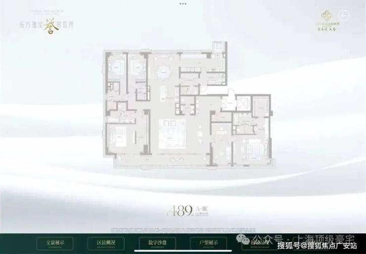 高层大平层(263–490㎡,主力):4-5 房 5 卫,270° 转角落地窗,约 16 米宽阳台,精装交付