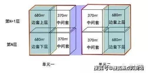 项目住宅部分全部大平层(复式)设计,单套面积约370-600-680-