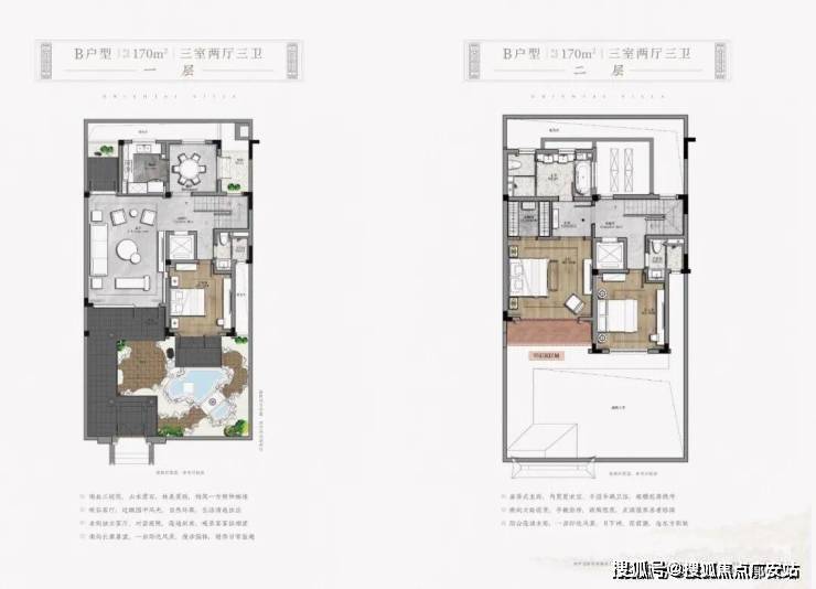 一般的合院,都会建成2+3,地下两层,地上三层。但是春江御园示范区却打造了2+2户型,建筑主体地下两层(其中一层为地下室夹层),地上两层。虽比一般合院少了一层,但却是十分合理的居住尺度。不论是建筑的美观度还是居住的体验感都是非常适宜的。