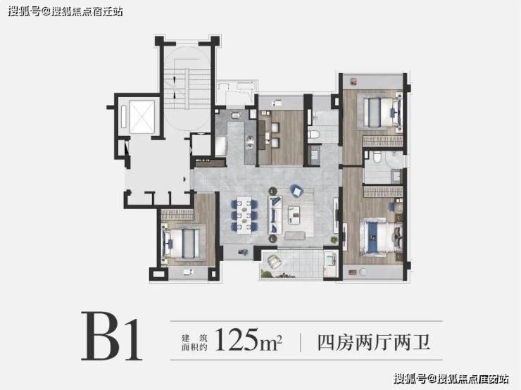 约125㎡4房2卫户型是约99㎡的升级版,四房更能保障业主的全生命周期需求。 售楼处电话:400-998-7894