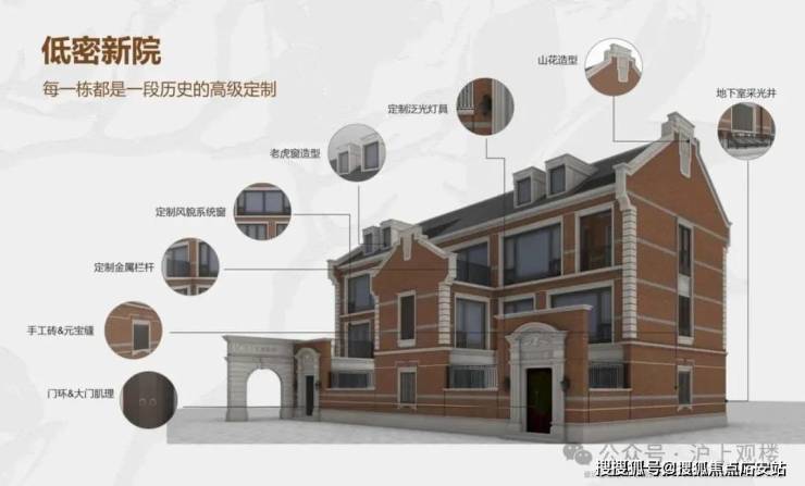 在建筑立面的设计上,应用8大定制级的产品手法,通过定制级手工砖、定制级山花造型、定制级铁艺栏杆、定制级入户壁灯、定制级的风帽雨水斗等建筑部品,让每一处细节都留有手工打磨的痕迹。