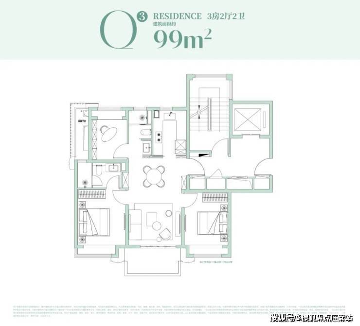 其中建面约99㎡3房在15#,双核心优势加持: