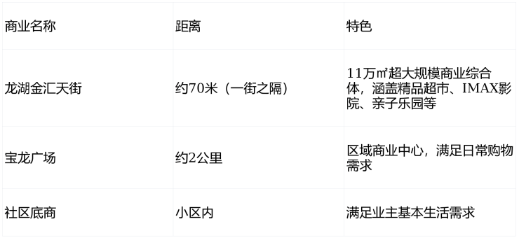 🛍️商业配套极致便利:一街之隔约11万㎡龙湖金汇天街(直线距离仅70米),6万方超大规模商业综合体,涵盖精品超市、IMAX影院、亲子乐园等,满足一站式消费需求