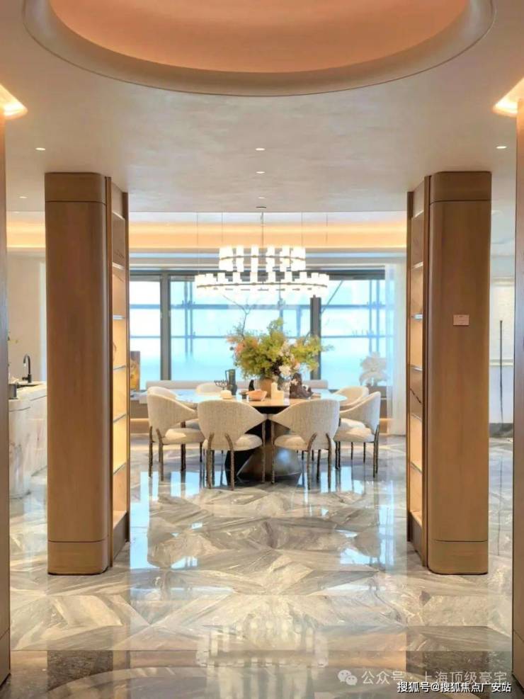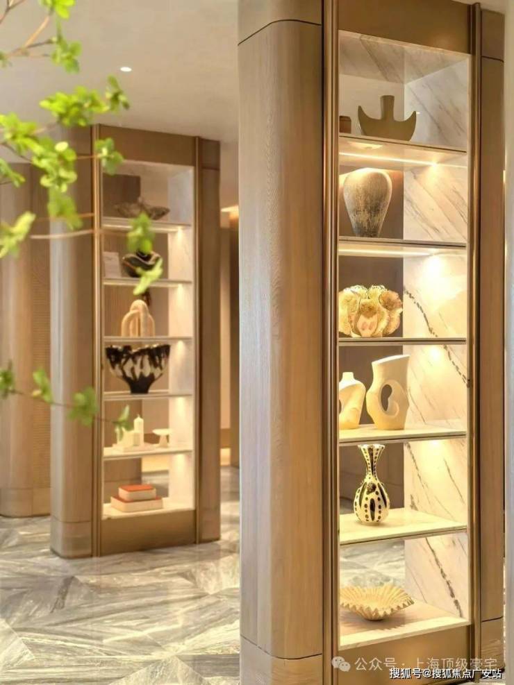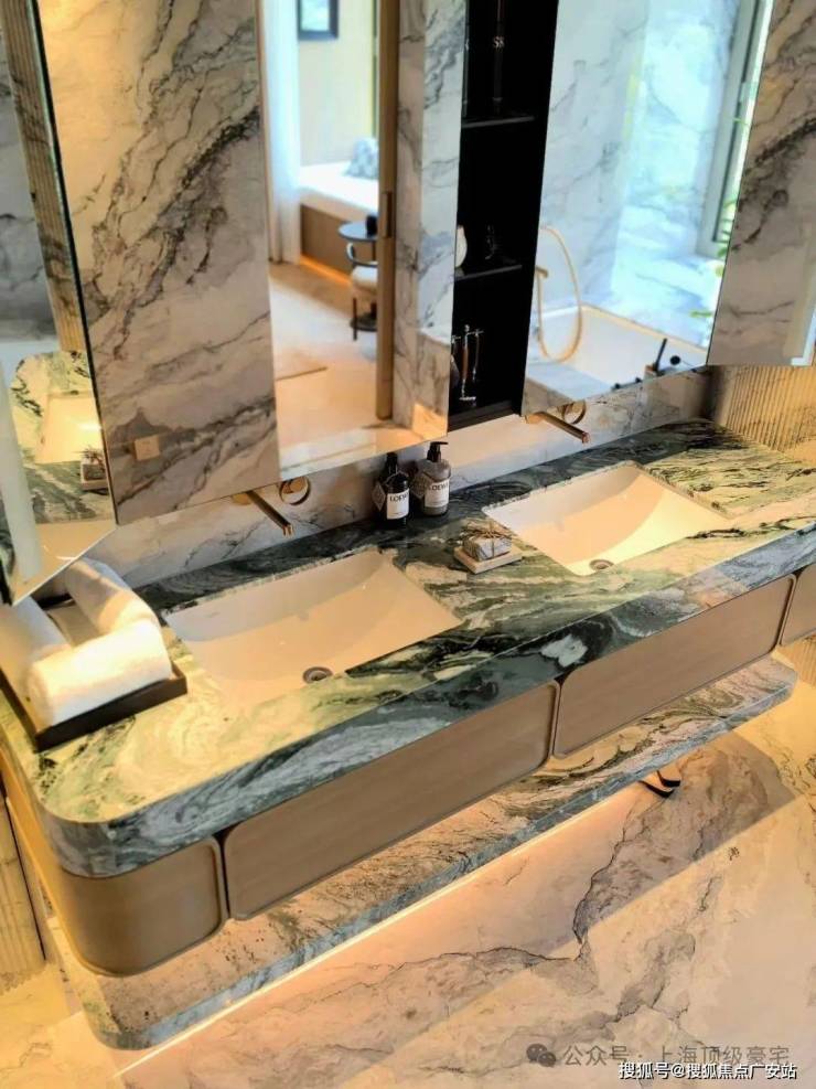 万科中興傲舍凝聚72种高端豪宅都难得一见的奢材,如皇家白奢石、Prada绿皮革面奢石、砖纹定制铝板等等,每一处细节都透露出精致与考究。