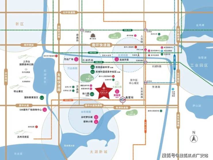 Within a 1-kilometer radius are high-end commercial complexes such as Wuzhong Wanda Plaza and Longhu Tianjie; within 3 kilometers are quality educational resources including Suzhou Foreign Language School and Wuzhong Experimental Primary School; surrounded by top-tier hospitals, providing comprehensive medical support.
