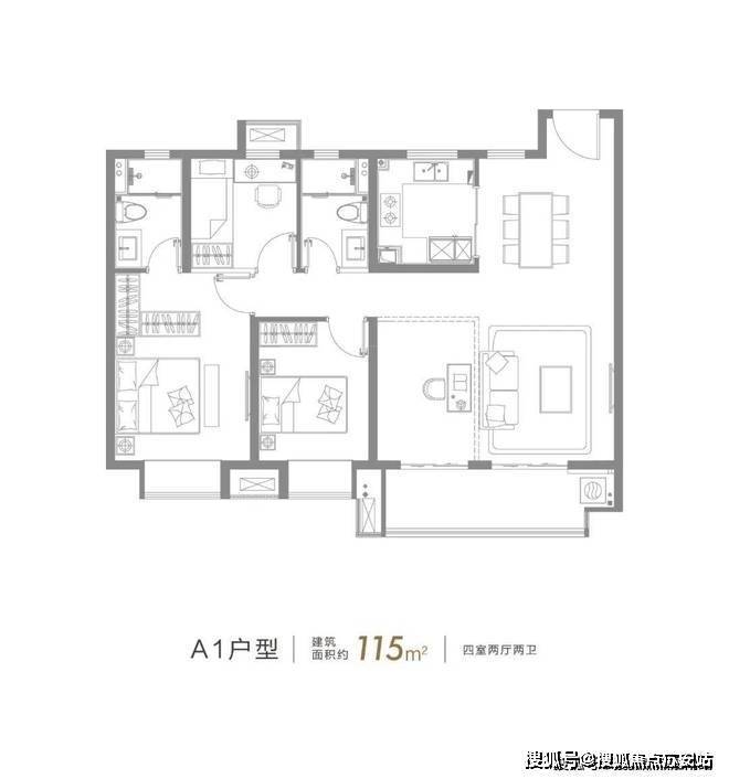 另外,次卧+客厅外的超大宽面阳台非常惊艳。主卧的套房设计也能保证主人生活的私密性。