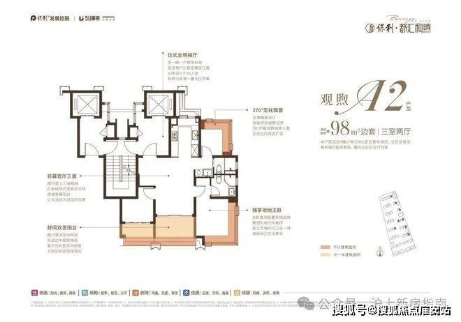 小高层类一梯一户、三阳台设计(部分户型) 、270°无柱飘窗(部分)