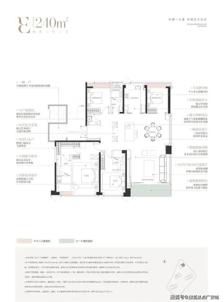 240㎡四房:楼王大平层,270° 环幕客厅,总价约3200-3800 万