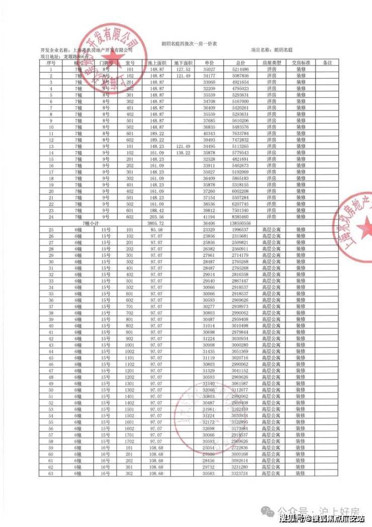 项目一房一价表
