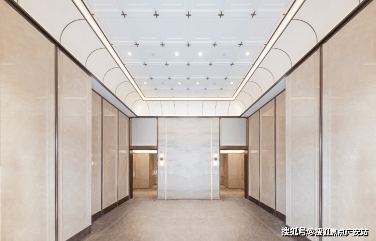 私宅标准延展到公区,大堂、电梯厅、电梯、入户厅四大区域一体化,解构主义遇见东方礼序,精工织就的穹顶叙事。
