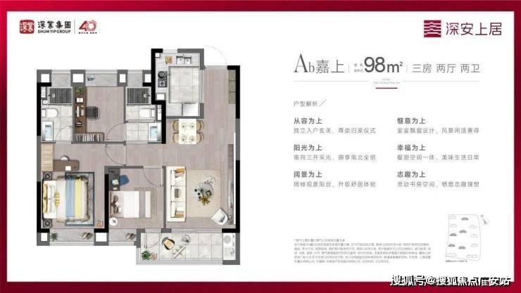 户型与总价:主推建面约88-98㎡的精装三房,总价约300万起。