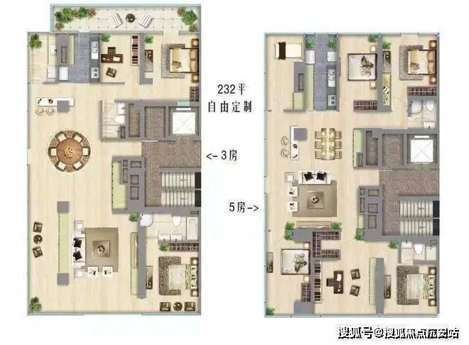 •面积:200.96㎡-.㎡(交付三房两厅三卫)