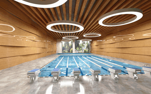 在桃浦中央绿地的南侧有 国金体育中心 ,规划设计数十个主题运动场所,如滑冰场、游泳馆、篮球馆、击剑馆、滑板公园、平衡车、舞蹈室、健身房、壁球室等。