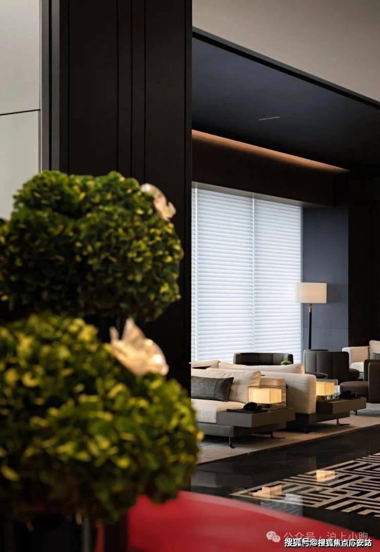 室内造景与空间排布紧密贴合,绿色的植物为室内带来自然的色彩和生命力,为视觉上的舒适和美感提供了平衡。