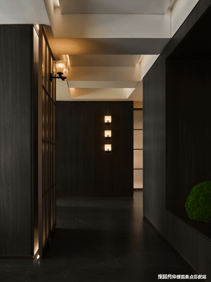 精巧的壁灯以及艺术玻璃肌理,形成一种节制而优雅的美感。