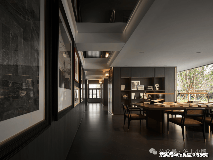 李益中空间设计联合万科,洞察高阶社区的生活方式,将城市生活与万科品牌理念相结合,以社区文化和创新精神为依托,呈现了一个集文创交流、书法画室、艺术展厅等多重功能的泛会所式架空层。
