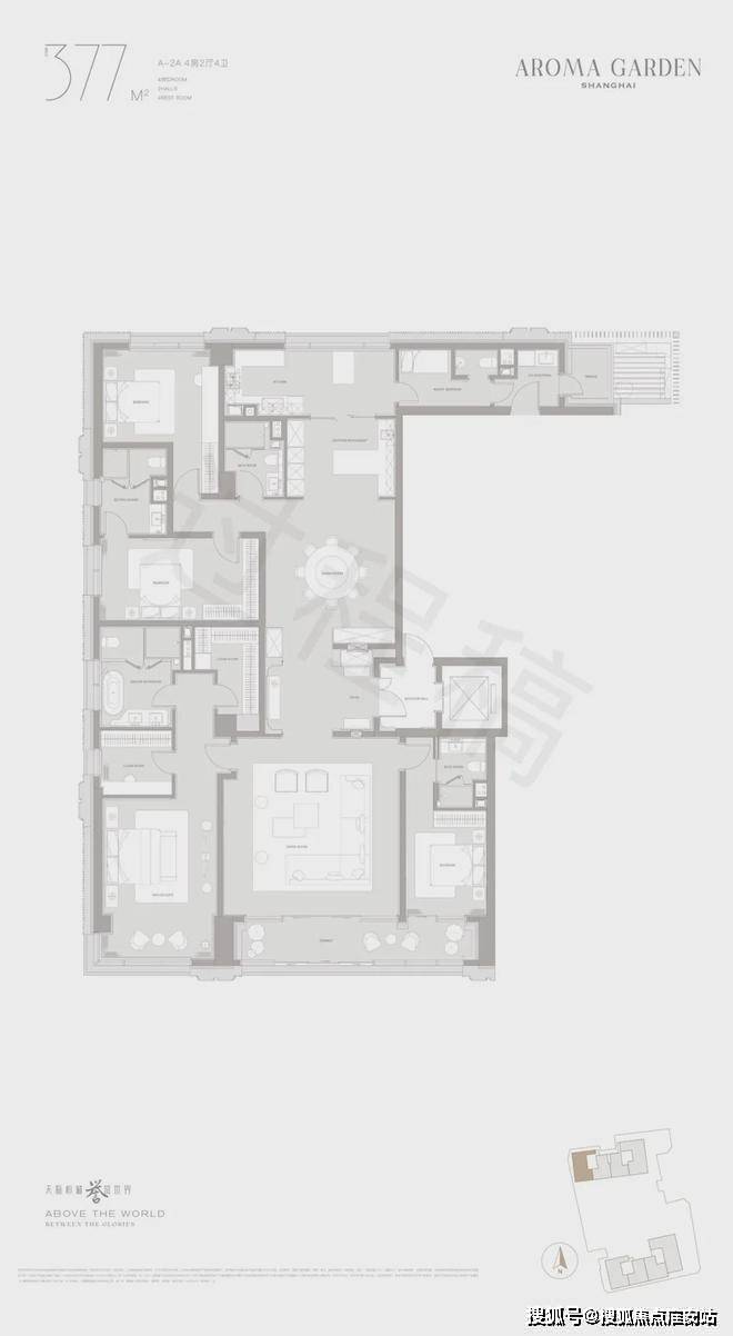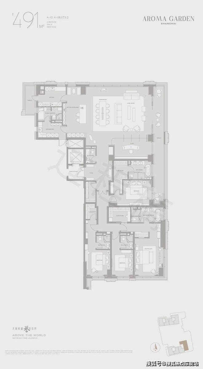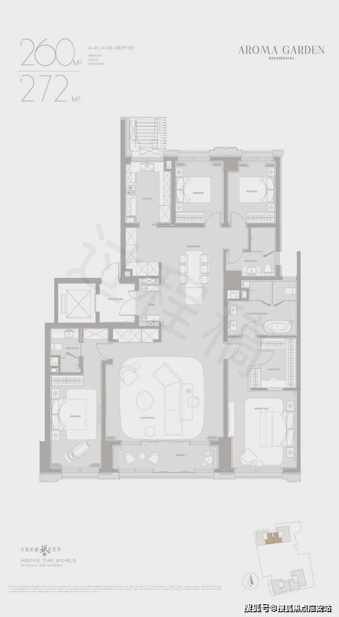 其中,A地块共计150套天际大平层,面积为建面约264-901㎡,主力户型为4房-5房。