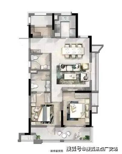 户型设计1条过道,过道面积紧凑,空间少不浪费。3室比较适合改善型人群,2卫的设计,解决了抢卫生间的尴尬,同时也保证主人生活私密性。户型的餐厅和客厅无缝连接,整体营造局部大空间的体验。房间动区简约大气,提供舒适生活娱乐氛围。主卧套房的设计,扩大卧室面积,提升主人居住体验,配有独立的主卧卫生间,增加私密性。该户型为动静分离设计,居住区域与娱乐区域完全分离,两者互不影响。卧室与卫生间相连,主人平日起居生活效率更高,提高了居住体验。