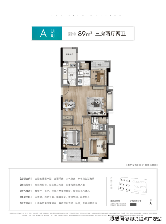 设计建筑面积约89-123㎡临湖美宅,匠心精装